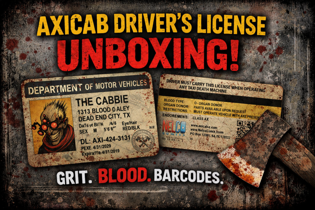 Axi-Cab creator You’ve seen the cab.You’ve met the driver.Now it’s time to see the credentials. We’re unboxing the official AxiCab Driver’s License — complete with grime, blood, barcodes, and the kind of paperwork you only get when the city knows you’re dangerous… but still lets you drive. This isn’t a prop.This isn’t a gag.This is […]